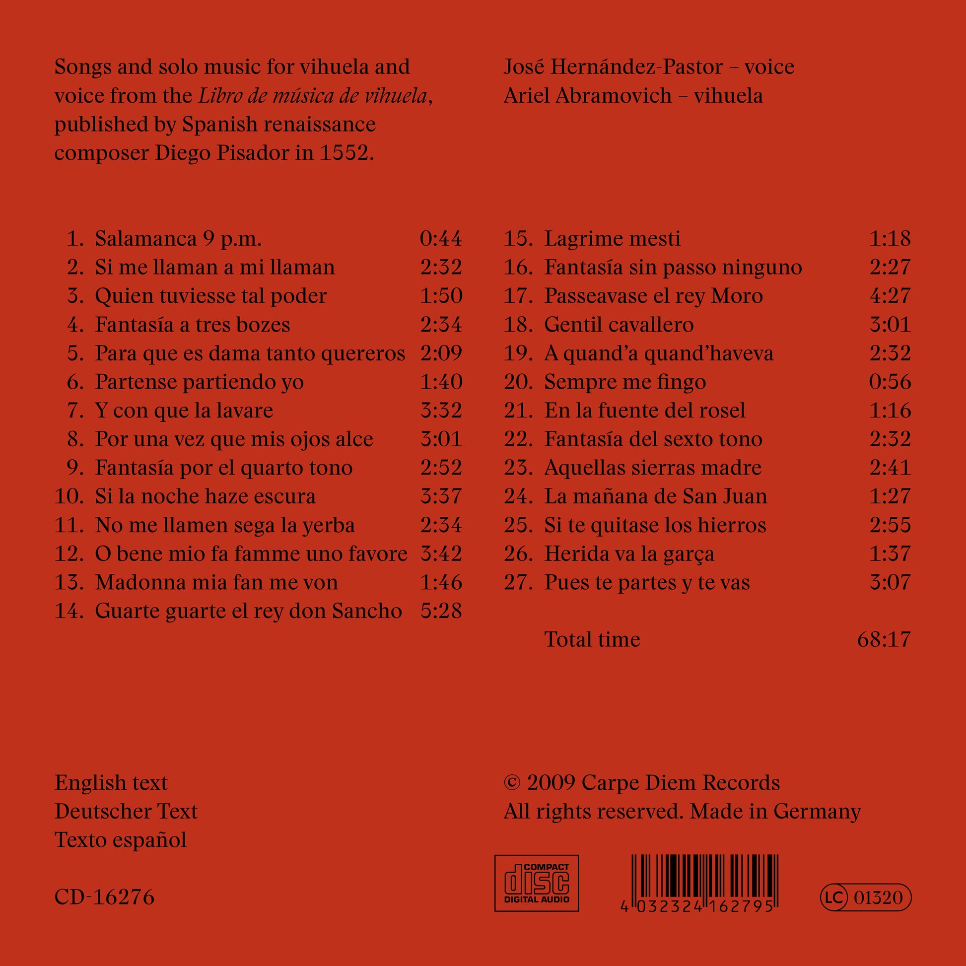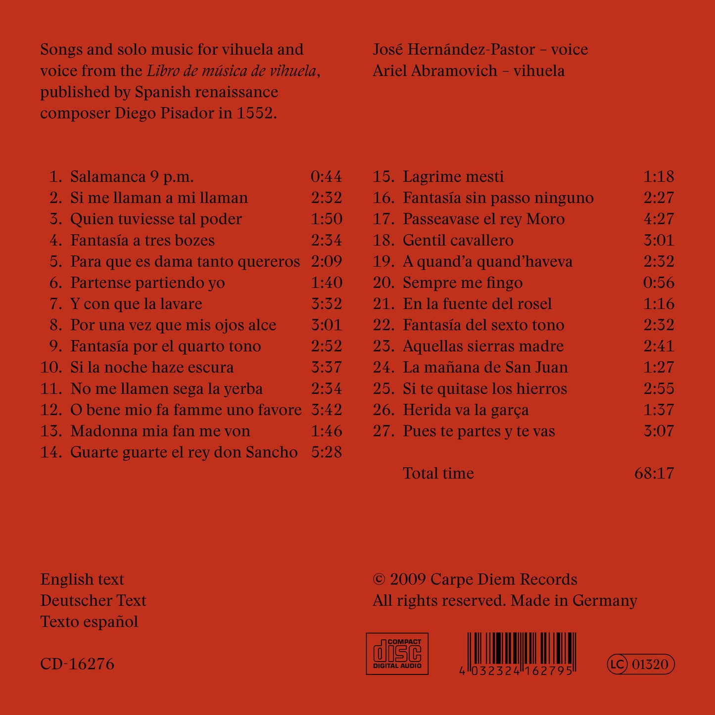 José Hernández-Pastor, Alto and Ariel Abramovich, vihuela: Songs by Diego Pisador (Salamanca 1552)